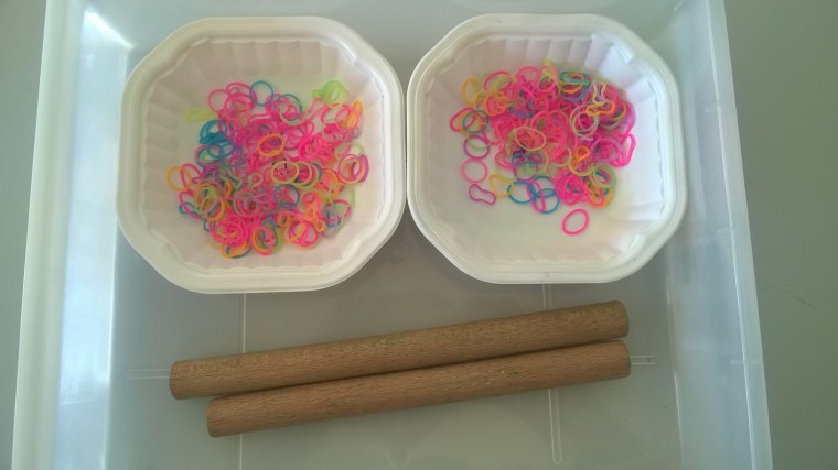 4. Voilà de chouettes idées, je vais recycler pour proposer l’activité des alvéoles à Mini Tam, et récupérer la boite de bracelets Loom de son grand frère pour l’atelier « élastique autour du baton »!